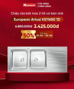 Đánh giá Chậu rửa bát 2 hố có bàn chờ Artusi KS11650 1D