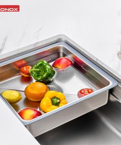 Phụ kiện đi kèm: Full set gồm thớt nhựa, colander, rổ phụ và giá úp bát inox