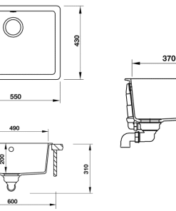 - Kích thước cắt đá lắp âm : 490D x 370Rmm