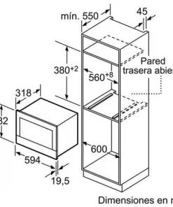 - Kích thước lò (chiều cao, chiều rộng, chiều sâu) 382 x 594 x 317 mm