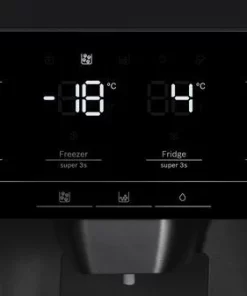 - Thuộc dòng tủ lạnh Side By Side được thiết kế 2 cánh, màu đen sang trọng với chất liệu cửa tủ làm bằng kính không viền tinh tế, phù hợp cho mọi vị trí bên trong nhà bếp.